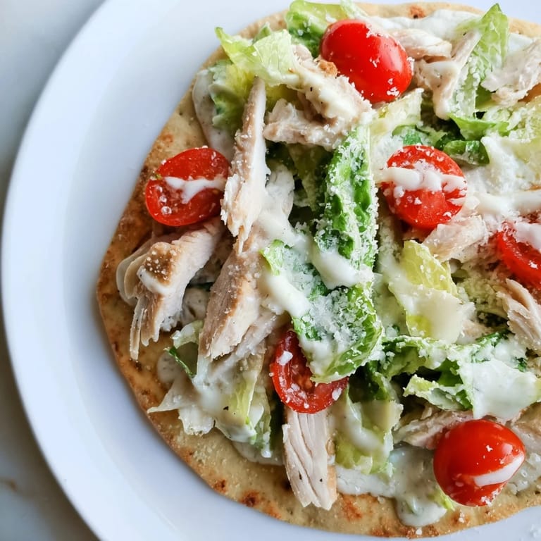 This dish is best served immediately, but if you're prepping for a crowd, you can bake the flatbreads and cook the chicken ahead, then assemble everything just before serving. Some people like to add crispy bacon or croutons on top for extra crunch, and I won't argue with that. A yogurt-based Caesar dressing lightens things up if you're trying to cut back on calories without losing flavor. If you want to make it heartier, serve it with a side of roasted vegetables or a simple soup.
