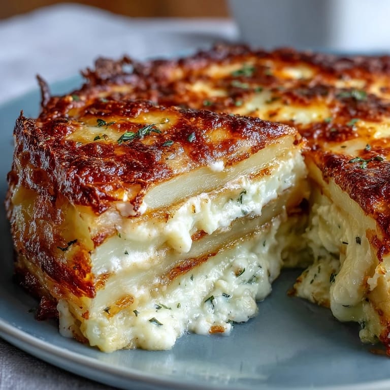 Save The smell of bubbling cheese and caramelized onions is what first taught me patience in the kitchen. I used to rush this pie, convinced I could shorten the baking time, only to pull out a watery, half-set disaster. It wasn't until a rainy Sunday afternoon, when I had nowhere to be and nothing to prove, that I let it bake properly and tasted what this dish was always meant to be. The potatoes turned silky, the cheese melted into every crevice, and the top crisped into a golden shell that crackled under my spoon. Now I make it whenever I need to slow down and remember that good things really do take time.