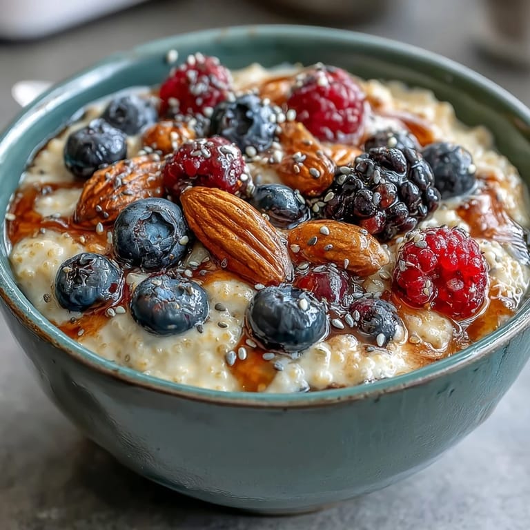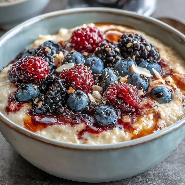 Both work wonderfully. Fresh berries offer bright flavor and texture, while frozen berries release juices as they thaw, creating a lovely fruit-infused syrup throughout the porridge.