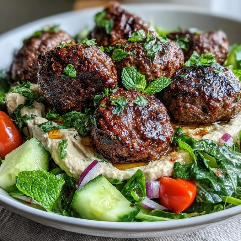 - Spread a generous swoosh of hummus on each plate, add a handful of salad, and top with warm meatballs. Garnish with extra parsley or mint if you like.